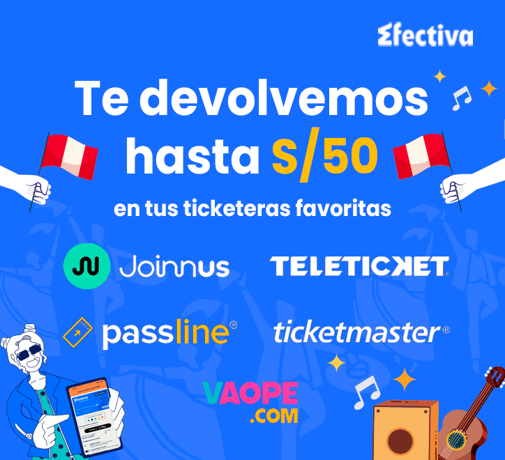 FINANCIERA EFECTIVA promueve y organiza la promoción denominada “Te devolvemos hasta S/50 por tus compras en Ticketeras” (en adelante, LA PROMOCIÓN), el cual tendrá validez a nivel nacional y entrará en vigencia del 01 al 31 de octubre de 2025, sujeto al cumplimiento de los presentes Términos y Condiciones.